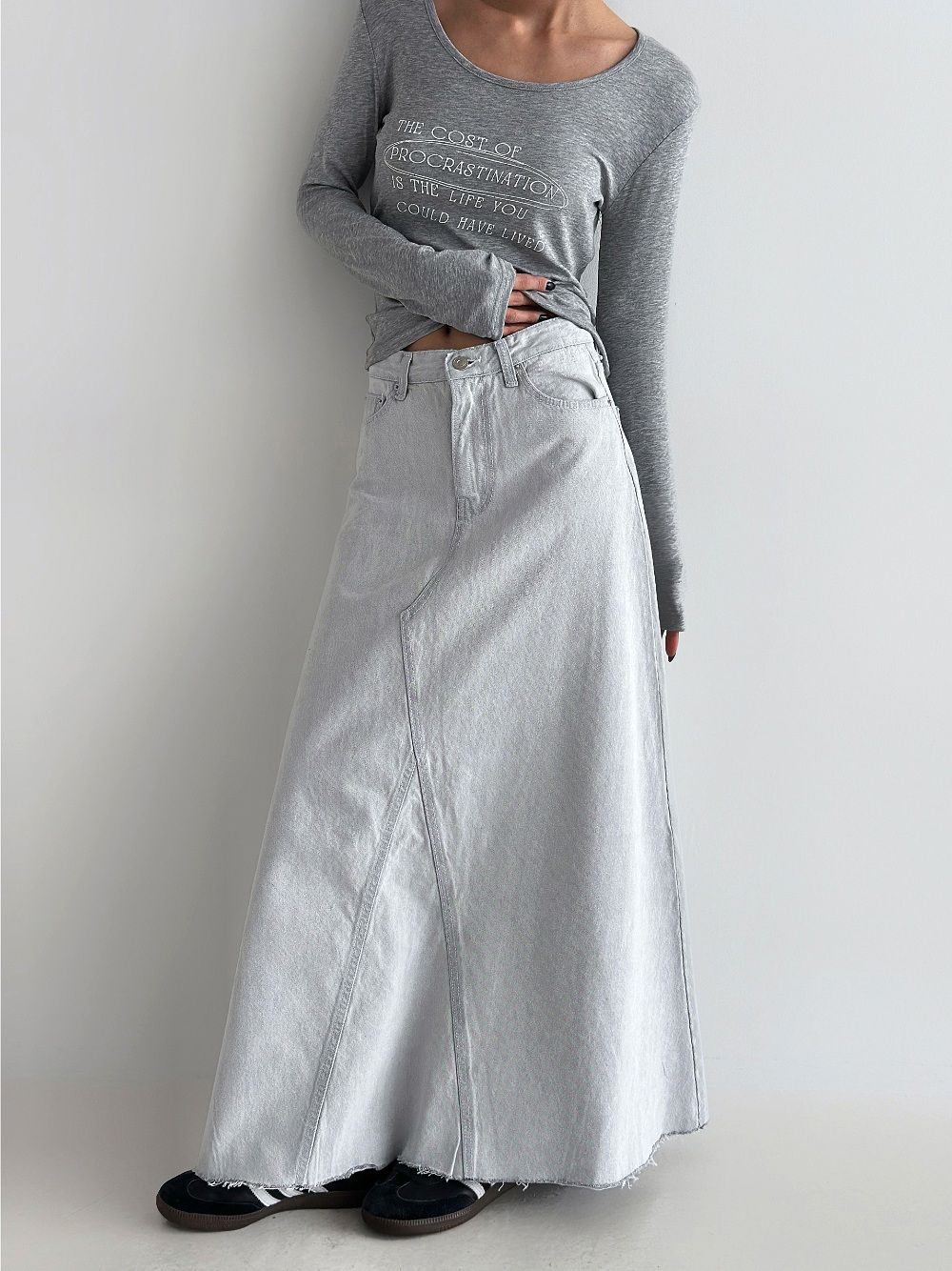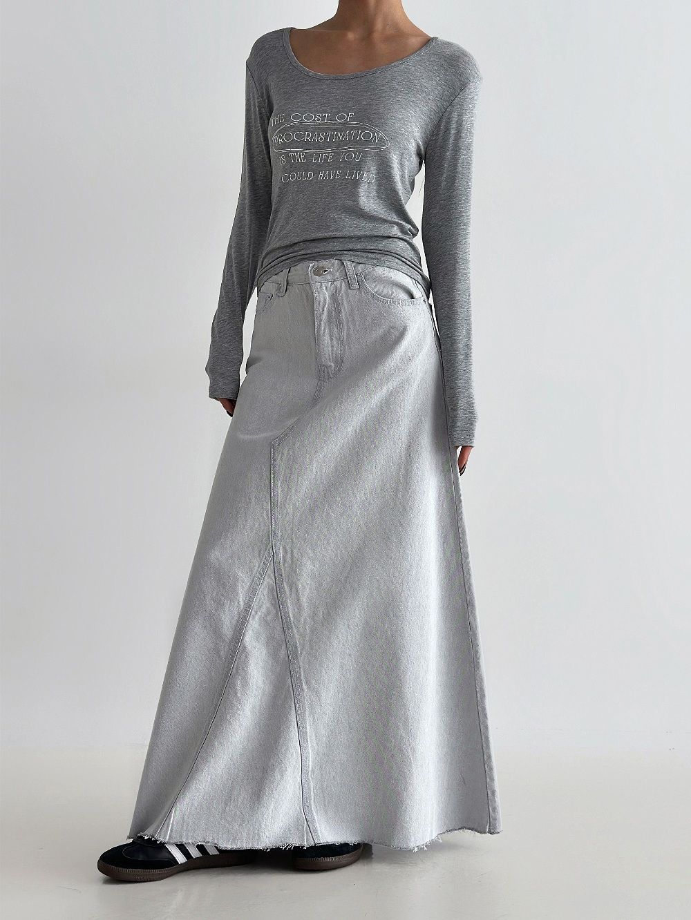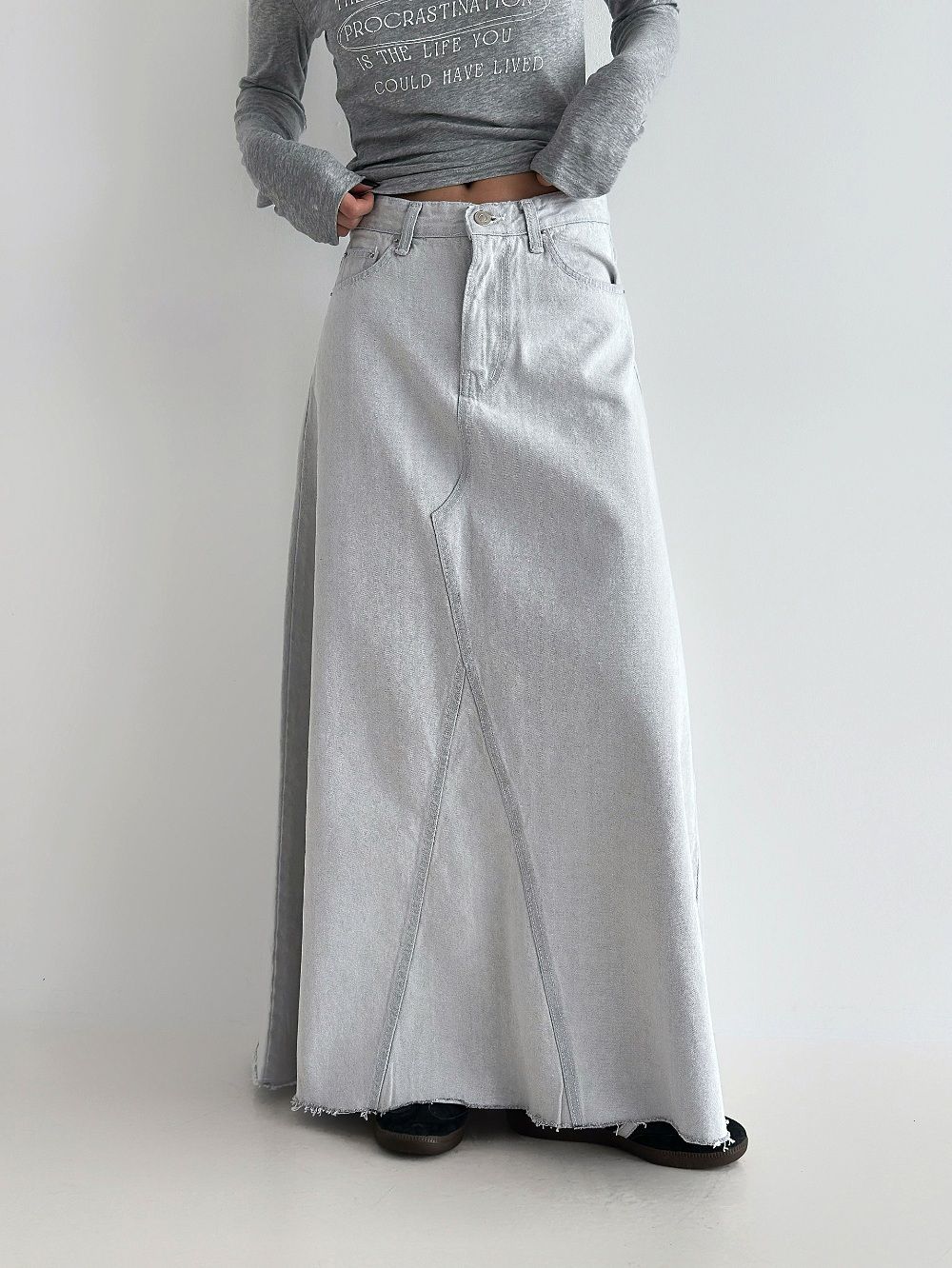Denim Cascade Long Skirt