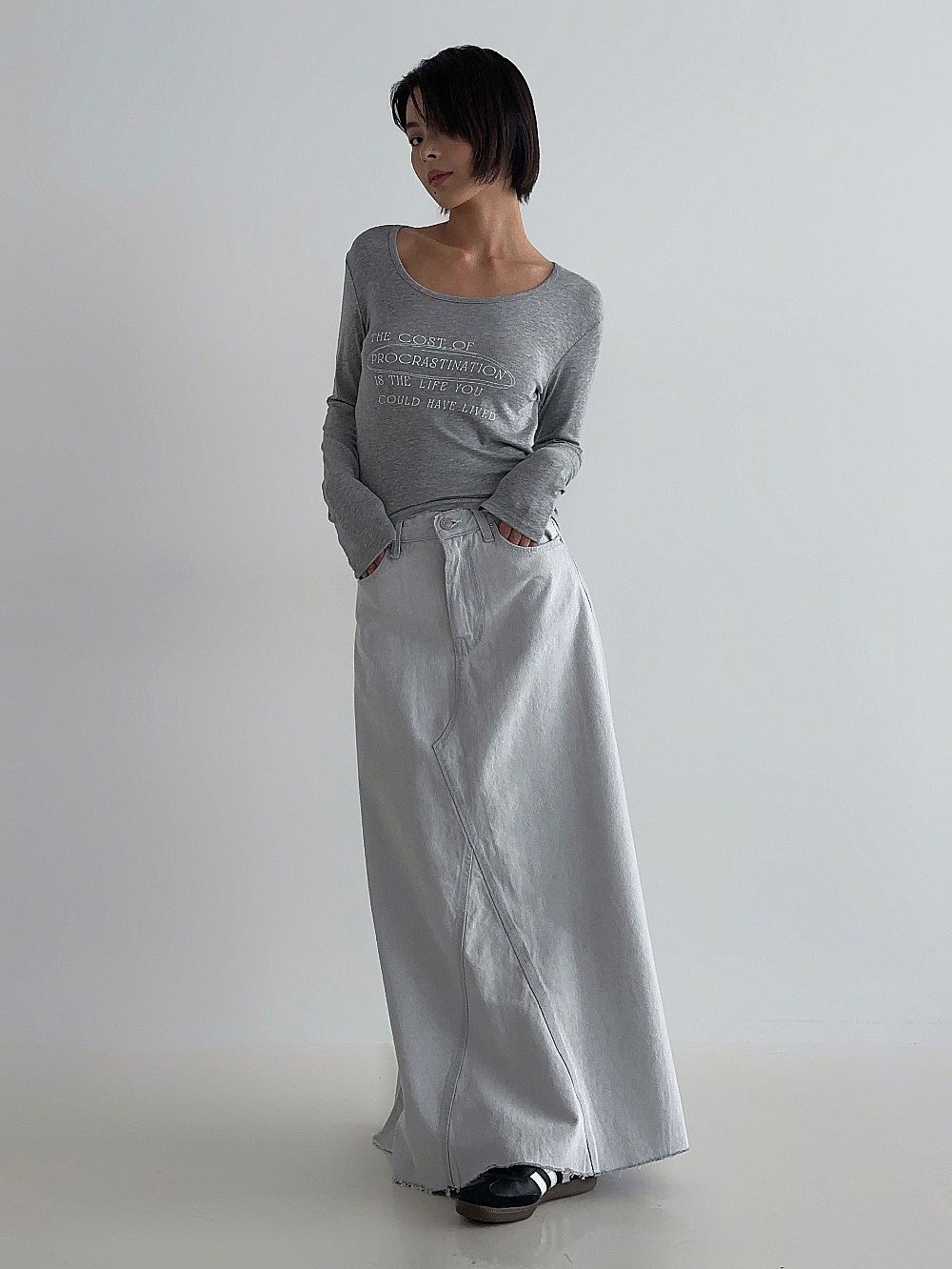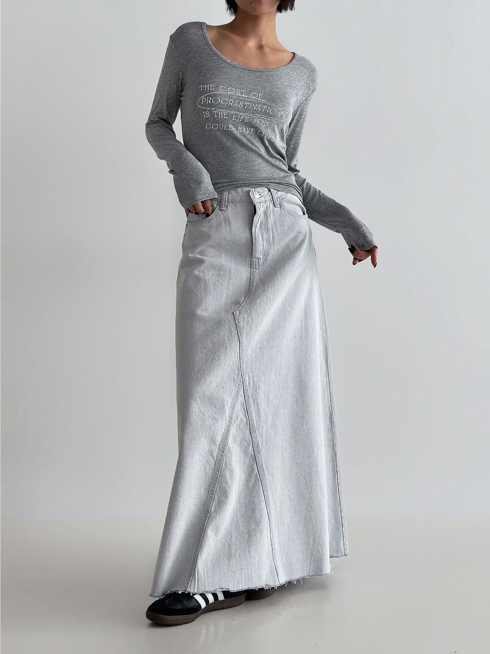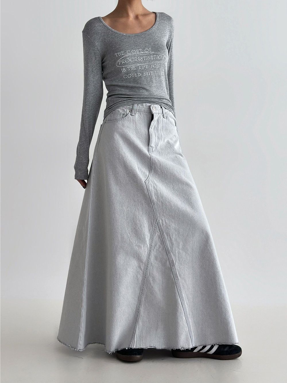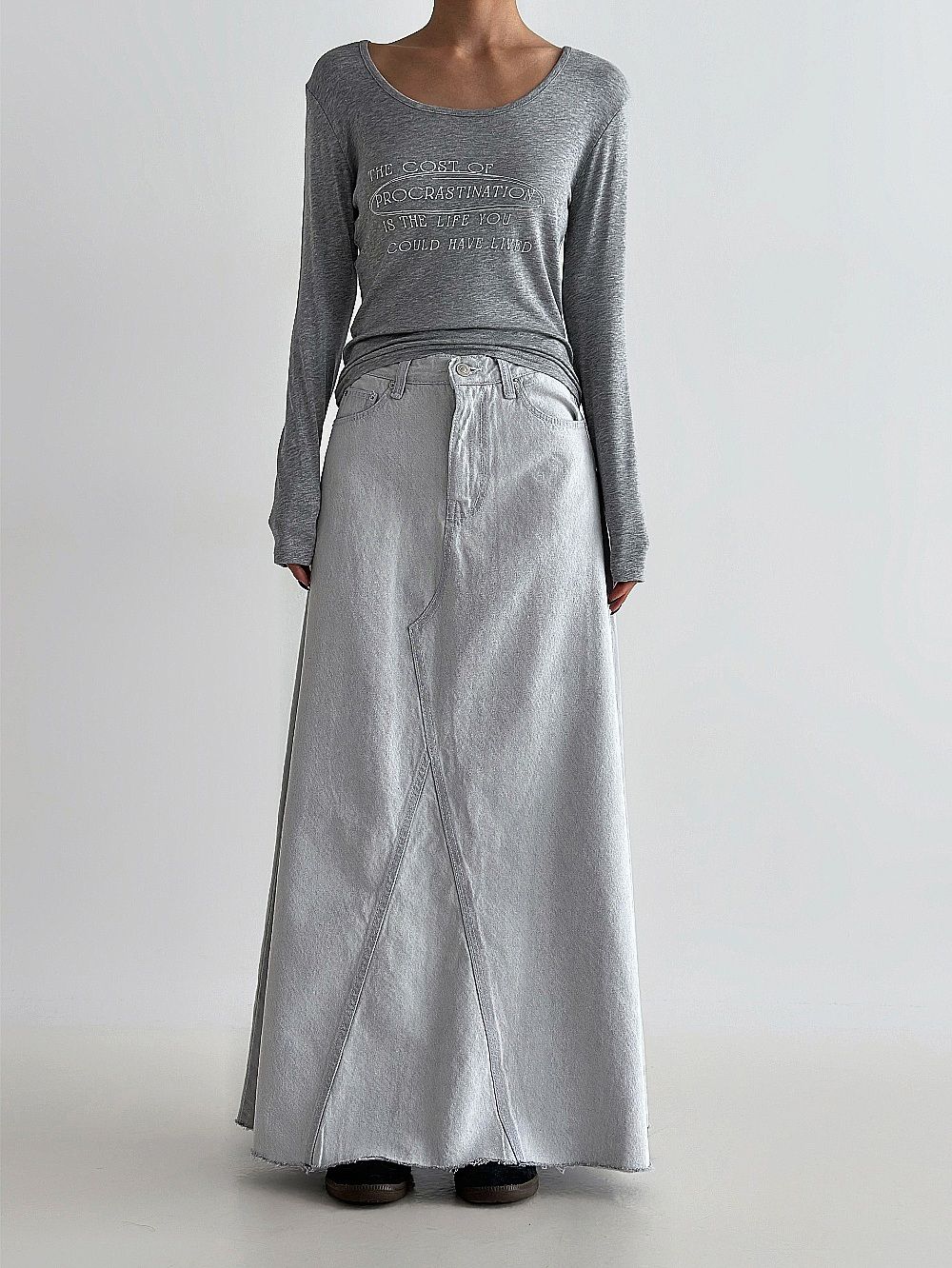 Denim Cascade Long Skirt