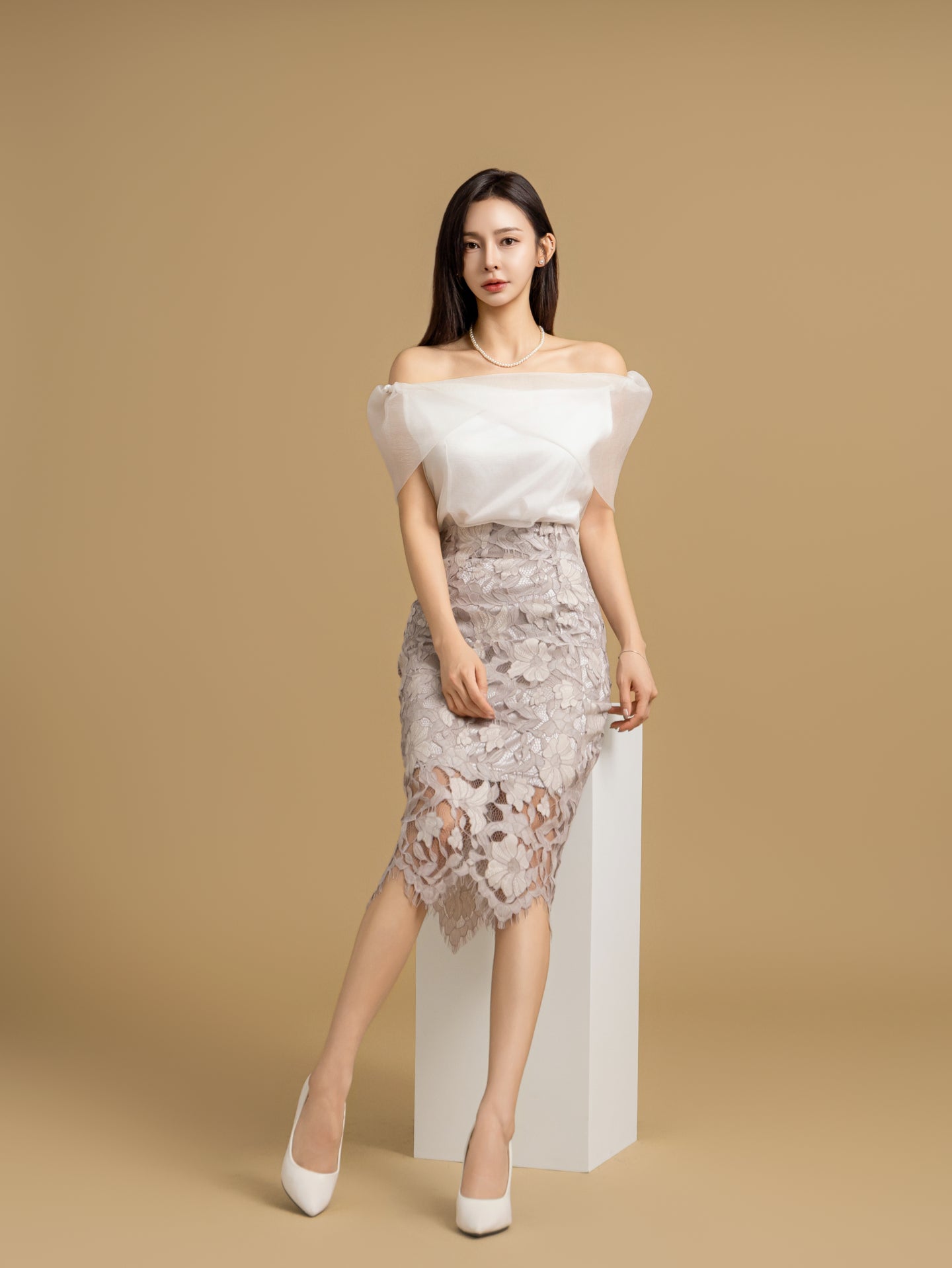 Floral Lace Midi Skirt